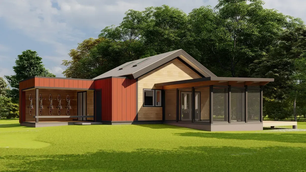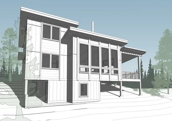 Entry perspective - This project envolves the design and development of a serene and picturesque retreat overlooing Birken Trail. This cabin aims to offer a tranquil escape where one can immerse themselves in nature, enjoy outdoor activities and rejuvenate their spirits amidst the beauty of the surrounding landscape.