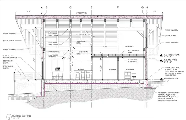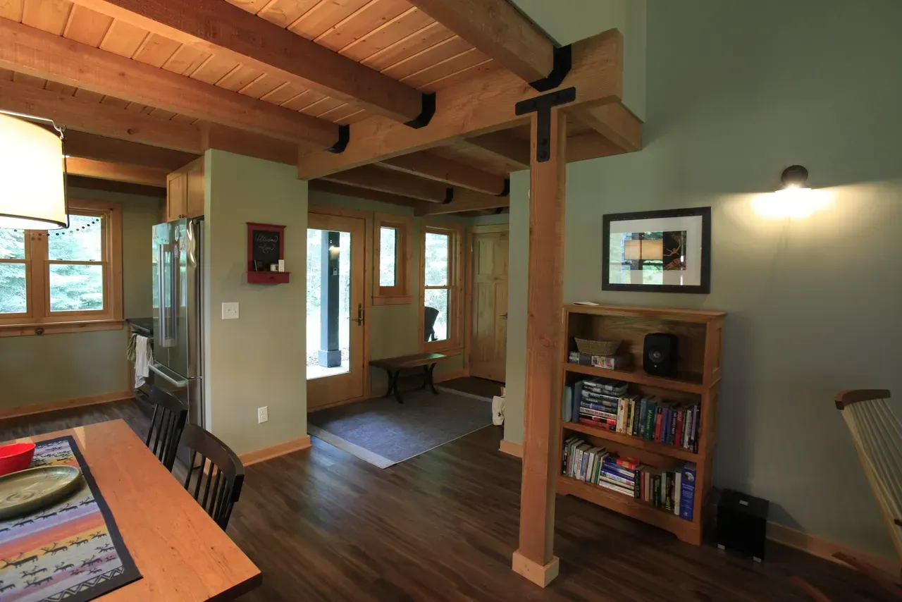 CREEKSIDE CABIN - Typical of this series, this cabin has a beautiful exposed structure consisting of ceiling rafters and timber beams in the open areas - one of the numerous cabin types designed for a development in the Bayfield, Wisconsin, area.