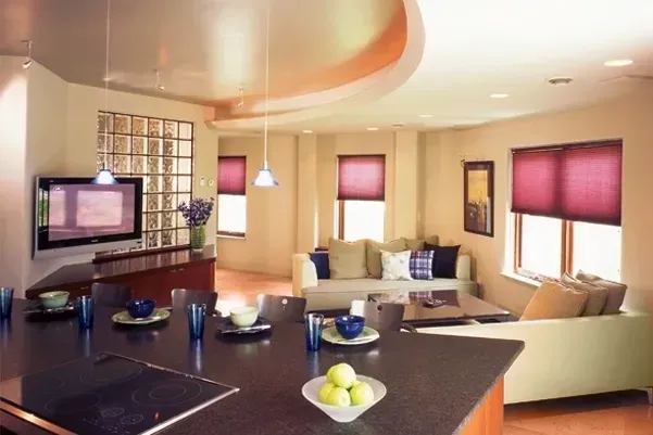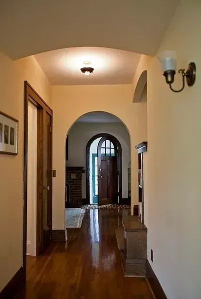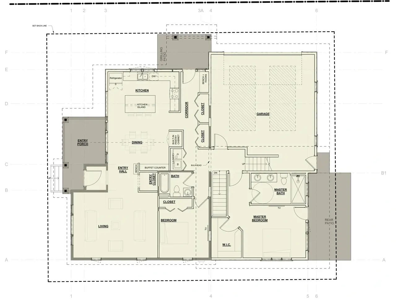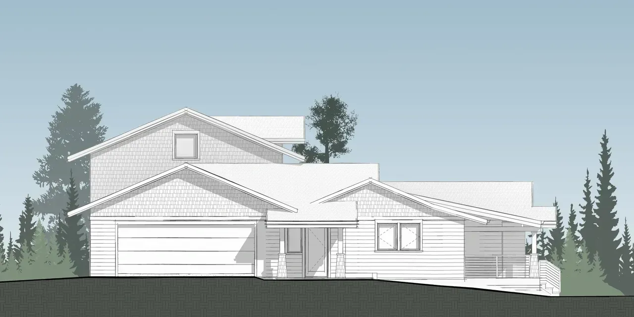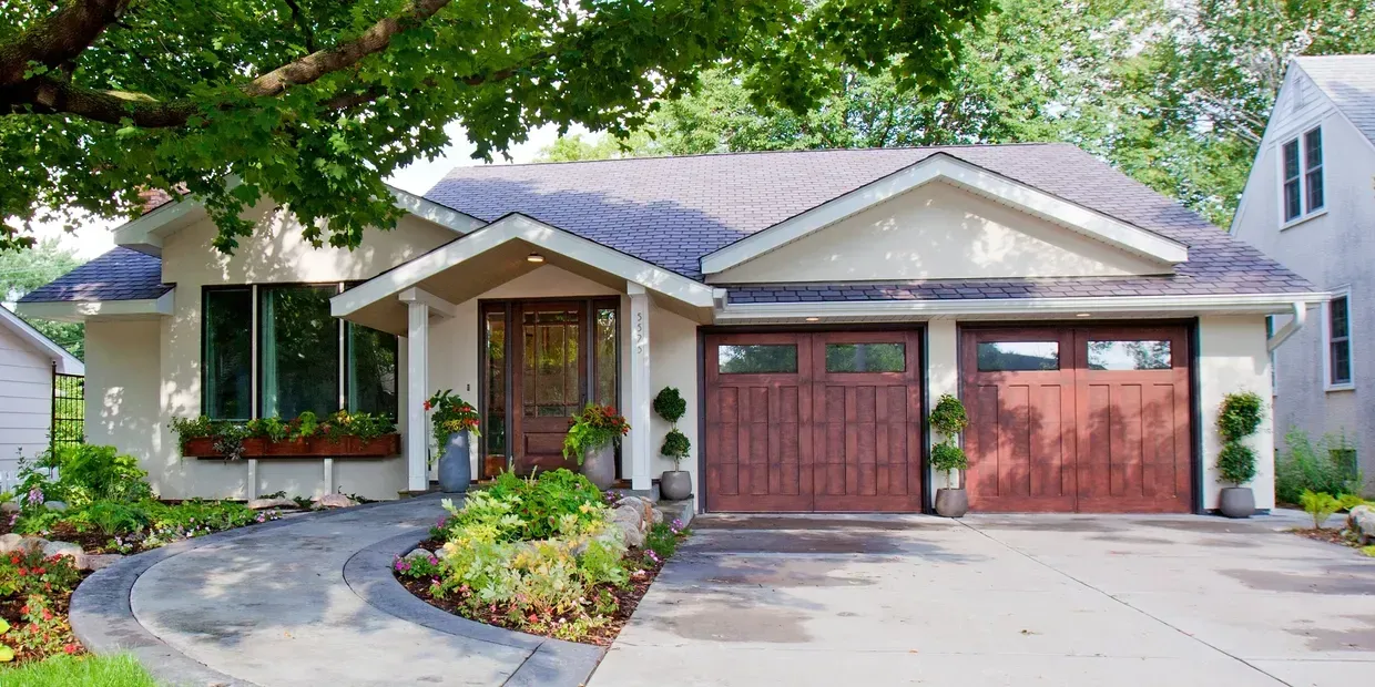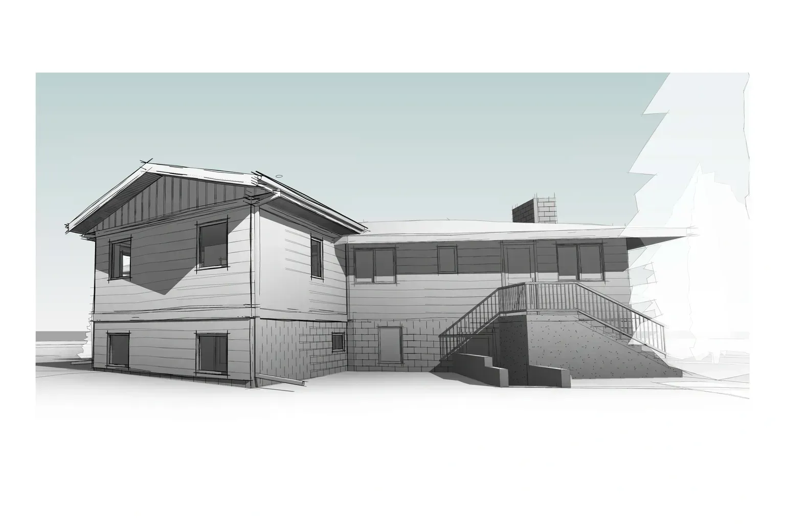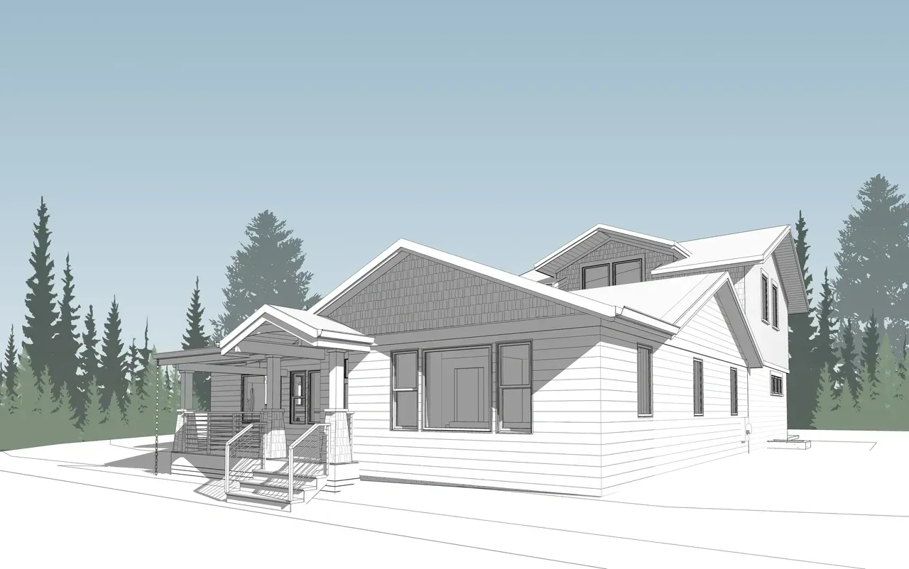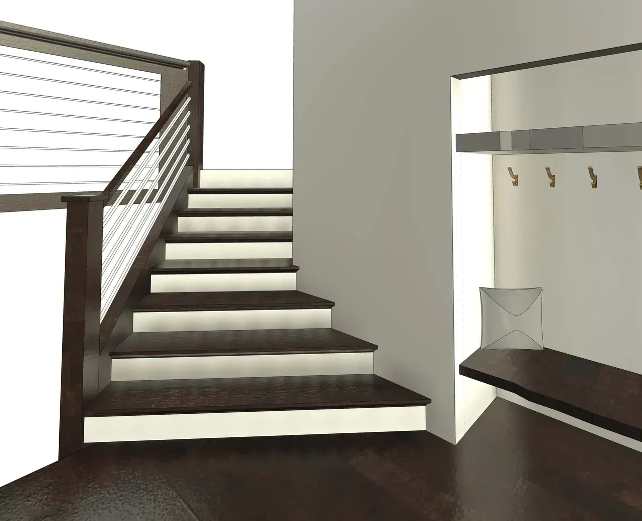 The owner challenged the architect to add "no new square footage" to this Southwest Minneapolis home. The interior was customized to an open modern retirement theme. This unique blend of styles kept the charm and scale similar to neighboring homes while opening the interior to connect spaces and capture daylight and landscape views. This view was accomplished by adding daylight with full-height windows to views and connecting rooms by adding flush beams to continue ceiling planes. A new vaulted ceiling was added over the kitchen and family room, capturing sunlight and opening a wonderful view of the integrated backyard landscaping. The final detail was the addition of a new ramp and covered entry, both of which allowed for a no-step entry as part of the overall strategy to transform this home into a living space.