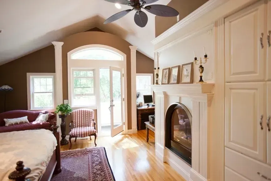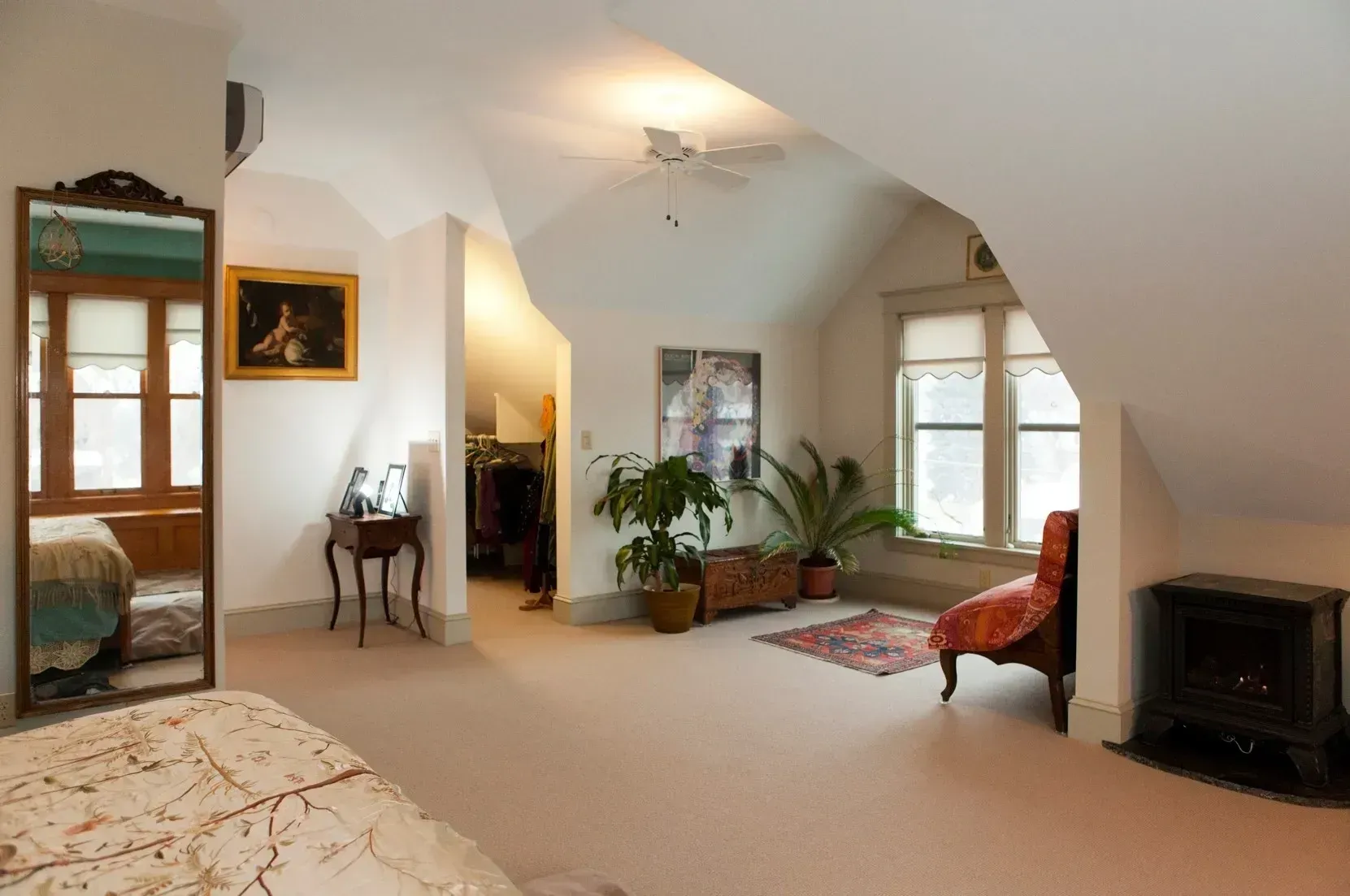 While adding a third-level window seat to view St. Paul's Mississippi River valley, the architect increased this home's size by carving out a master suite in the existing unfinished attic. A creative floor plan under the existing roof allowed for the addition of this new master bedroom plus an entirely new bathroom and walk-in closet. A yoga and sitting room also made its way into the unit, transforming a once cold, dusty, and forgotten attic into a space that screams charming.