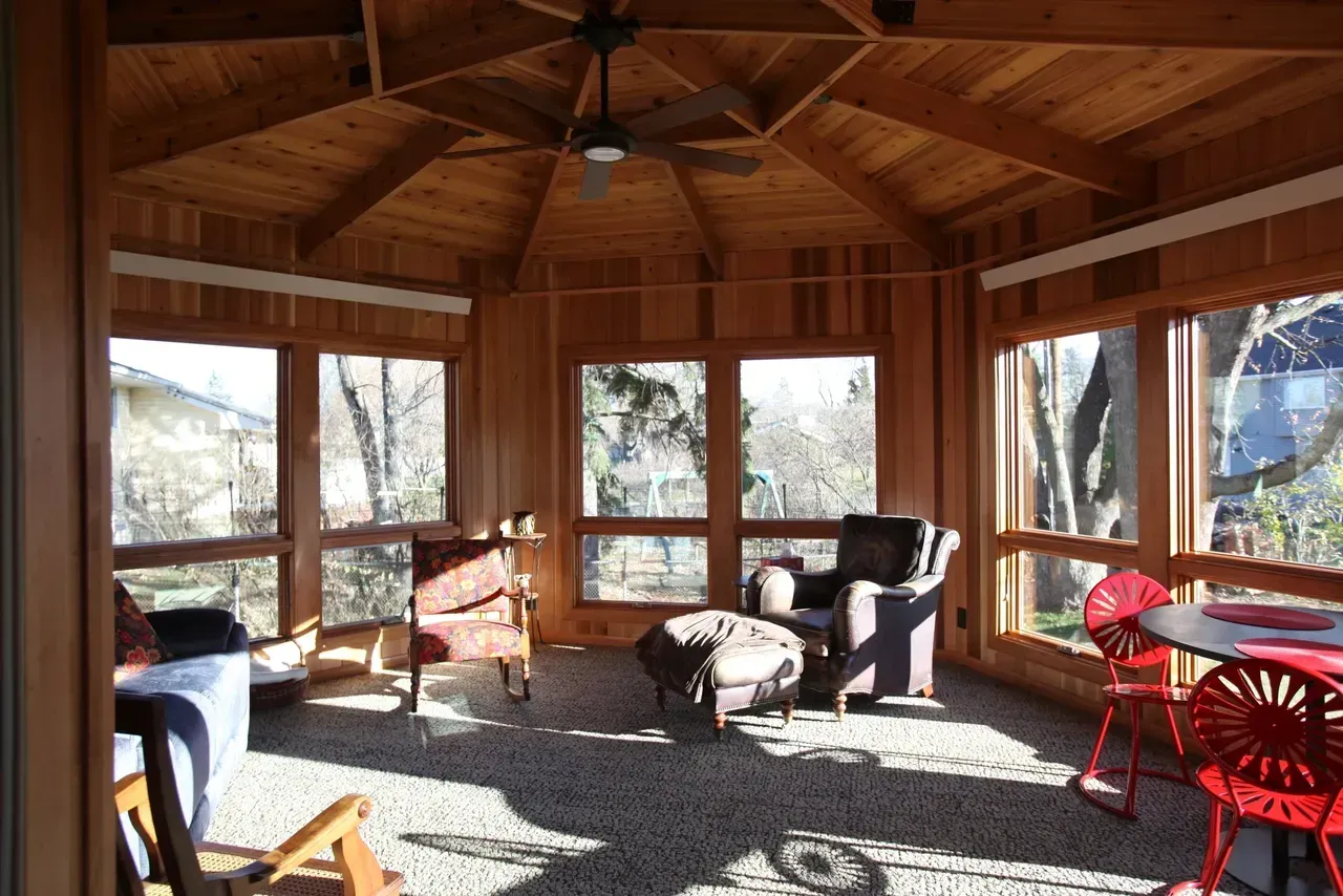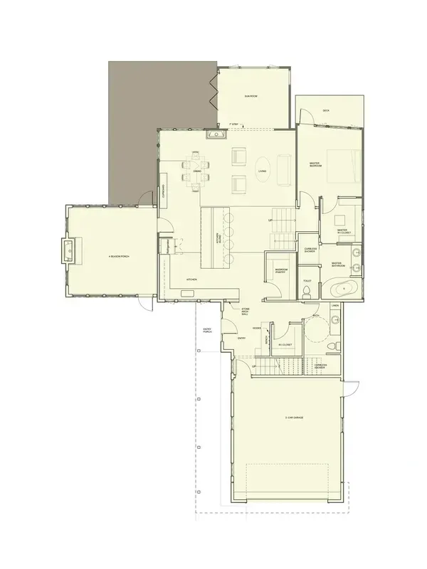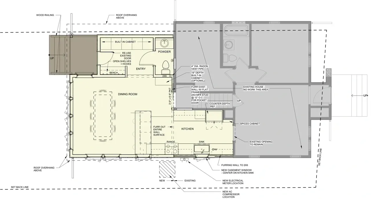 A selective renovation and modest addition to the space transformed this turn-of-the-century home into a lovely, open living space that embraces its beautiful backyard views. Extending a new dining room over the previous drive-under garage created a covered walk-out entry opening to a new patio. Moreover, the extensive structural renovation allowed continuous ceiling planes to open, transforming the once segmented rooms into a cohesive unit.